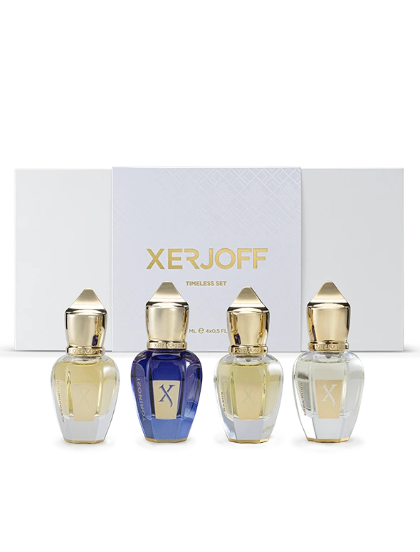 Alexandria II - Erba Pura - Naxos - TORINO21 The Timeless Set unites Xerjoff’s four most-loved perfumes in a set of four miniature flacons. Four enduring scents that stand out from the house’s 20-year history and continue to leave their mark on the world of perfumery, each one revealing a different side of Xerjoff's creativity.